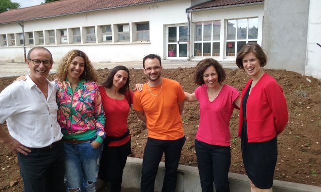 De gauche à droite : Claude (Président de l'AVVV), Maïssa (Compagnie May-B), Céline (Compagnie Ode Izis), Mickaël (Président de l'Association Musicale AMVV), Christine (AVVV), Marion (Cheffe de la Fanfare).
