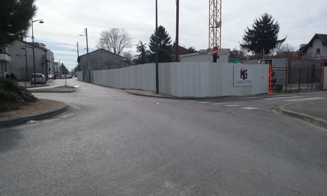 Et il commence dangereusement pour les piétons puisque les trottoirs le long du terrain ont été condamné. Le pire, c'est qu'aucun passage piéton provisoire, ni aucun panneau n'a été posé. Peut-être seront-ils tracés et les panneaux posés avant qu'il y ait un accident?