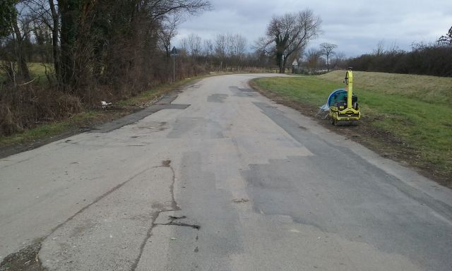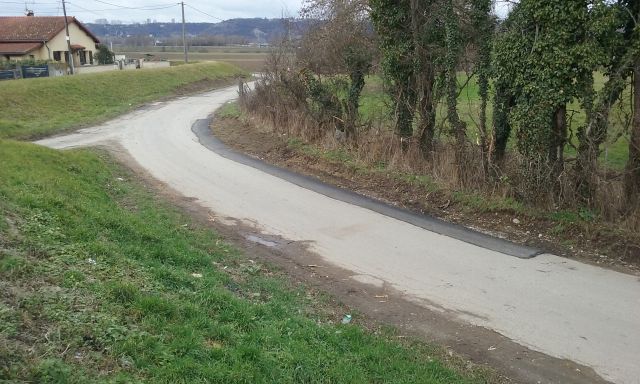 Après plus d'un an d'une route défoncée sur plusieurs kilomètres et aux abords effondrés en de très très très nombreux endroits, les services de la voirie sont enfin intervenus.