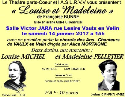 L'ASLRVV organise au tout début de l'année 2017 (le 14 janvier à 15h) une représentation théâtrale à la salle Victor Jara. Pour tous renseignements et réservation, nous contacter : president@avvv.fr.