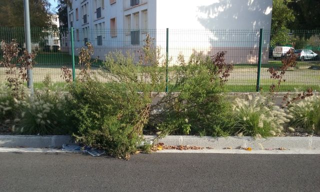 Et la rue est très sale. Cela confirme bien que les espaces verts par ici ne sont pas entretenus. Faudra-t-il là aussi que les habitants nettoient l'espace public? Avec le montant des impôts payés pas sûr qu'ils apprécient longtemps.