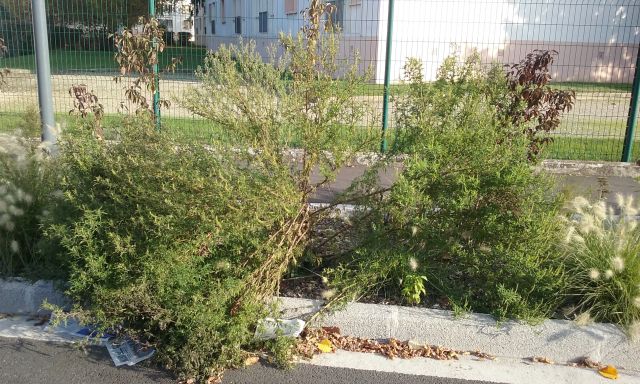 Le 12 septembre dernier nous signalions que dans nos massifs municipaux l'ambroisie avait toute sa place. Des plants d'un bon mètre cinquante avaient poussé.