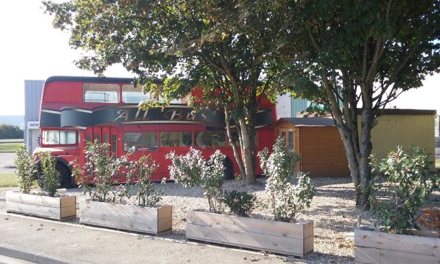 Une fois n'est pas coutume; il va encore être question d'un restaurant. Depuis quelques mois un bus à impériale londonien a élu domicile au bout de l'Avenue Marcel Cachin et du chemin de l'Epi juste en face de la zone maraichère. Ce bus a été transformé en restaurant et il offre même un belle terrasse ombragée lorsqu'il fait chaud.