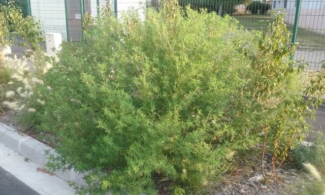 Hauteur : 1.60 m de haut / Diamètre : 1.40 m / Situation : Rue Lamartine dans les massifs tout neuf / Nature : ambrosia artémisiifolia aussi appelée ambroisie.