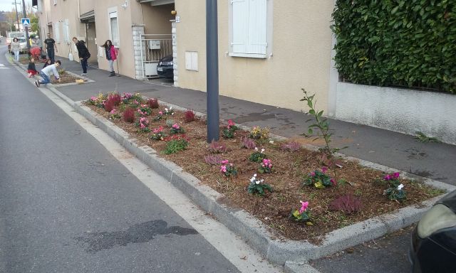 Déjà l'an dernier, en avril 2016, nous plantions 4 massifs (voir notre article du moment). Puis nous ajoutions deux jardinières rue Jean Jaurès, et encore cette année, nous avons pu planter au printemps rue Marcellin Berthelot (voir l'article) et égayer encore les massifs existants.