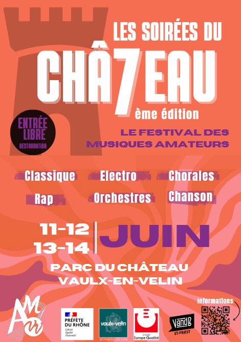 Les Soirées du Château c'est cette semaine. De mercredi 18h à samedi tard dans la nuit, venez écouter de la musique chaque soir, musique tant classique, qu'électro, ou rap, des solistes ou des ensembles, des chorales et des chansons.
