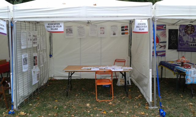 Nous avons rencontré de nombreux vaudais, du Village ou d'ailleurs et nous avons eu le plaisir d'avoir la visite de M le délégué du Préfet à qui nous avons remis un petit livret de notre premier rallye du village de 2011. Nous avions un beau stand, bien couvert (très utile car nous avons passé une bonne partie de l'après-midi sous l'eau) et bien équipé pour la mise en place de nos documents de présentation de l'AVVV.