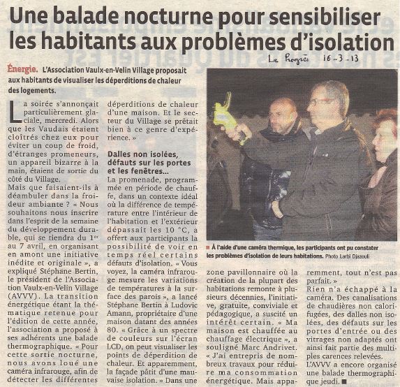 Après quelques heures passées pour apprendre la technique ce sont près de 20 logements qui ont pu ainsi être diagnostiqués de la sorte. Les résultats seront transmis aux intéressés d'ici fin mars. L'initiative a été apprécié par tous. Le Progrès s'en est fait le relais dans son édition de samedi 16 mars (lire ci-dessous). Une heureuse initiative à renouveler en 2014.