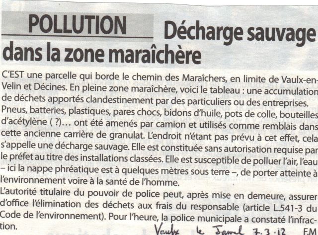 Après l'affaire EGP en 2009, une nouvelle affaire de décharge sauvage dans la zone maraichère? Mais où cela se situe-t-il?
